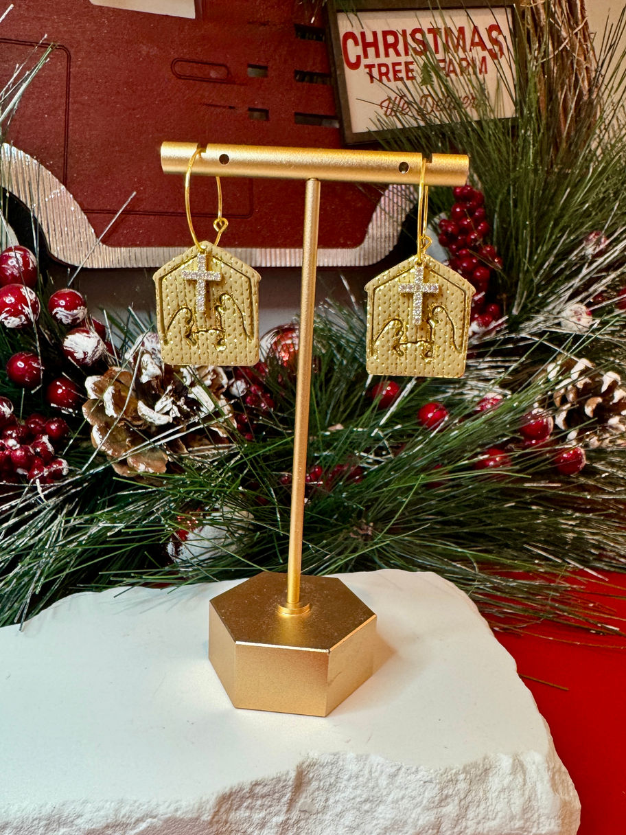 Celebrate the season with Bethlehem Light, a design that honors the true meaning of Christmas. These handcrafted earrings feature polymer clay drops embedded with gold foil for a subtle shimmer. The manger-inspired shape is adorned with a crystal cross charm accented with pavé CZ stones, bringing just the right touch of festive elegance.